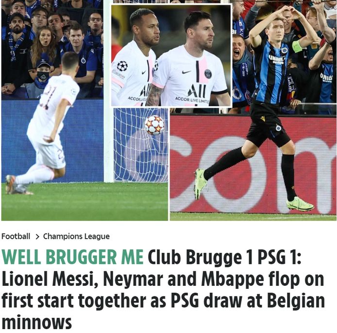 Premium partner Official partner Official supplier. Woensdag 15 september 2021 om 1202 Yanick Vos. PSG unveiled their superstar trio against Club Brugge but it wasnt enough to secure three points.