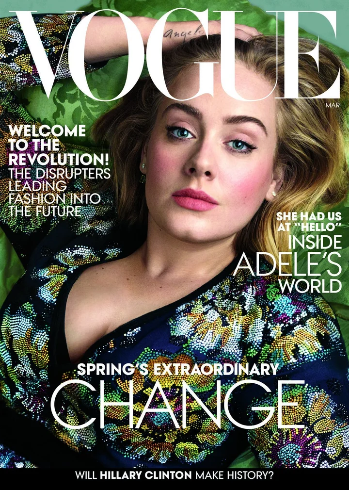 Brooke Baldwin talks to actress and model Emme about Vogue magazines practice of using Photoshop to alter images. British Vogue got lots of attention for being one of the first major fashion magazines to feature Adele on its cover but the issue itself was a flop sales-wiseNo word yet on how well American Vogues March issue did Adele is the most popular woman in the world but one of the worst sellers weve ever had said editor Alexandra Shulman. Adele Covers Vogue March 2012 Grammy juggernaut Adele takes the cover of Vogues March 2012 issue.