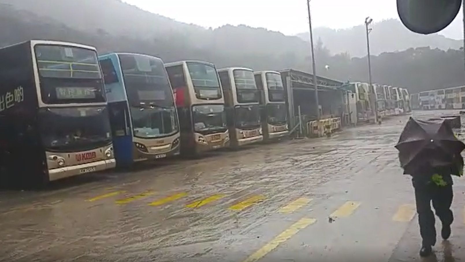 颱風下的巴士車長清晨回廠候命橫風橫雨露天車廠車上呆等 香港01 社會新聞